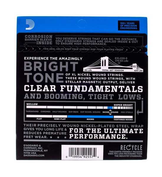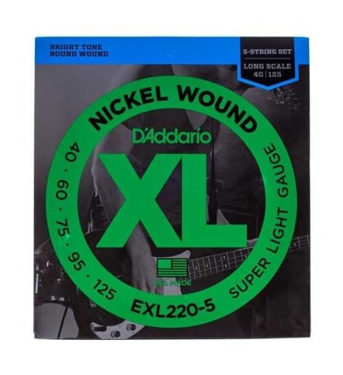 Étiquettes d'addario, D'ADDARIO EXL220-5, EXL220-5, Jeu de 4 cordes, Jeu de 4 cordes BASSE D'ADDARIO, JEU DE 5 COREDES GUITARE BASSE